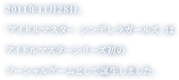 『アイドルマスター』シリーズのソーシャルゲームとしてサービス開始。100人以上のアイドルとともに、"シンデレラガールズ"の物語が始まりました。