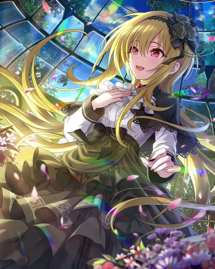 誰をも虜にしてしまう天性の魅力を持った、金色の髪に赤い瞳を持つクォーターの帰国子女アイドル。休学していたため19歳だが現在高校3年生。その瞳に見つめられれば、彼女のお願いを断ることは誰にもできない。