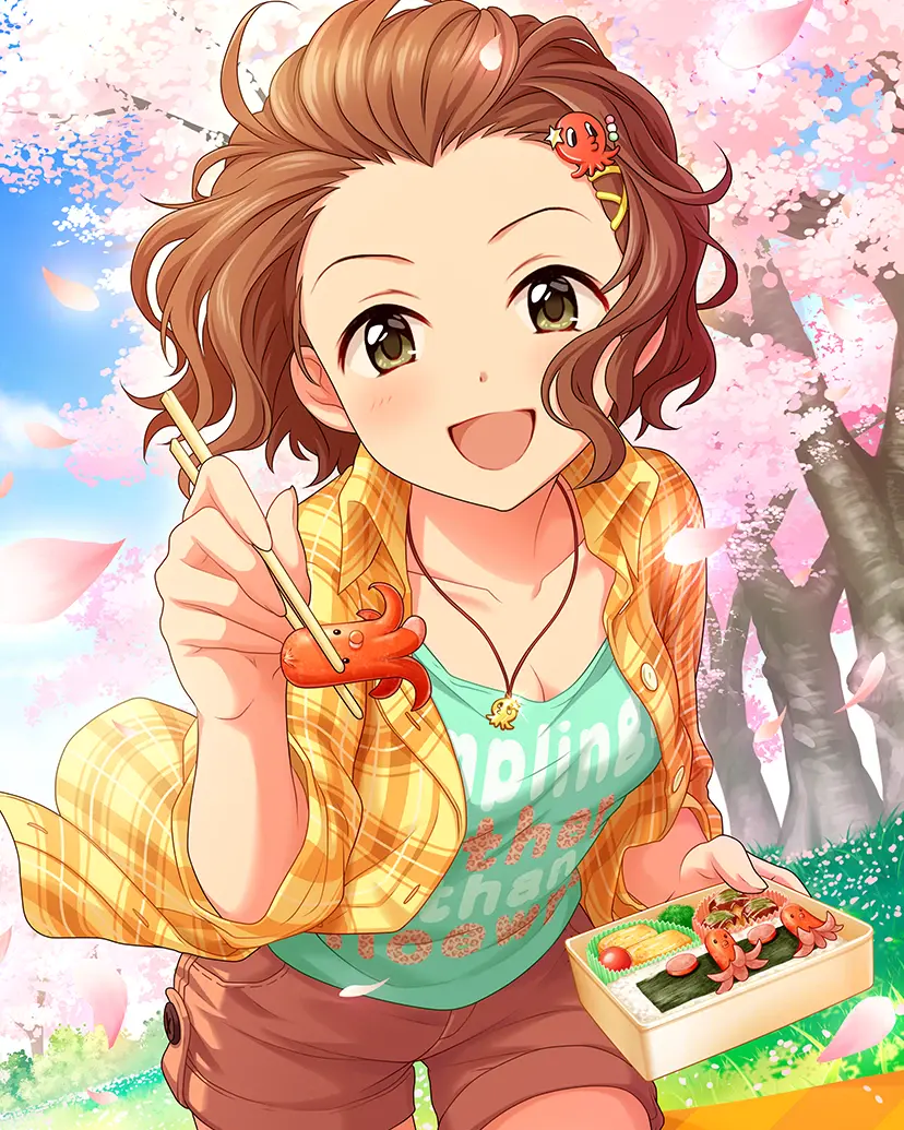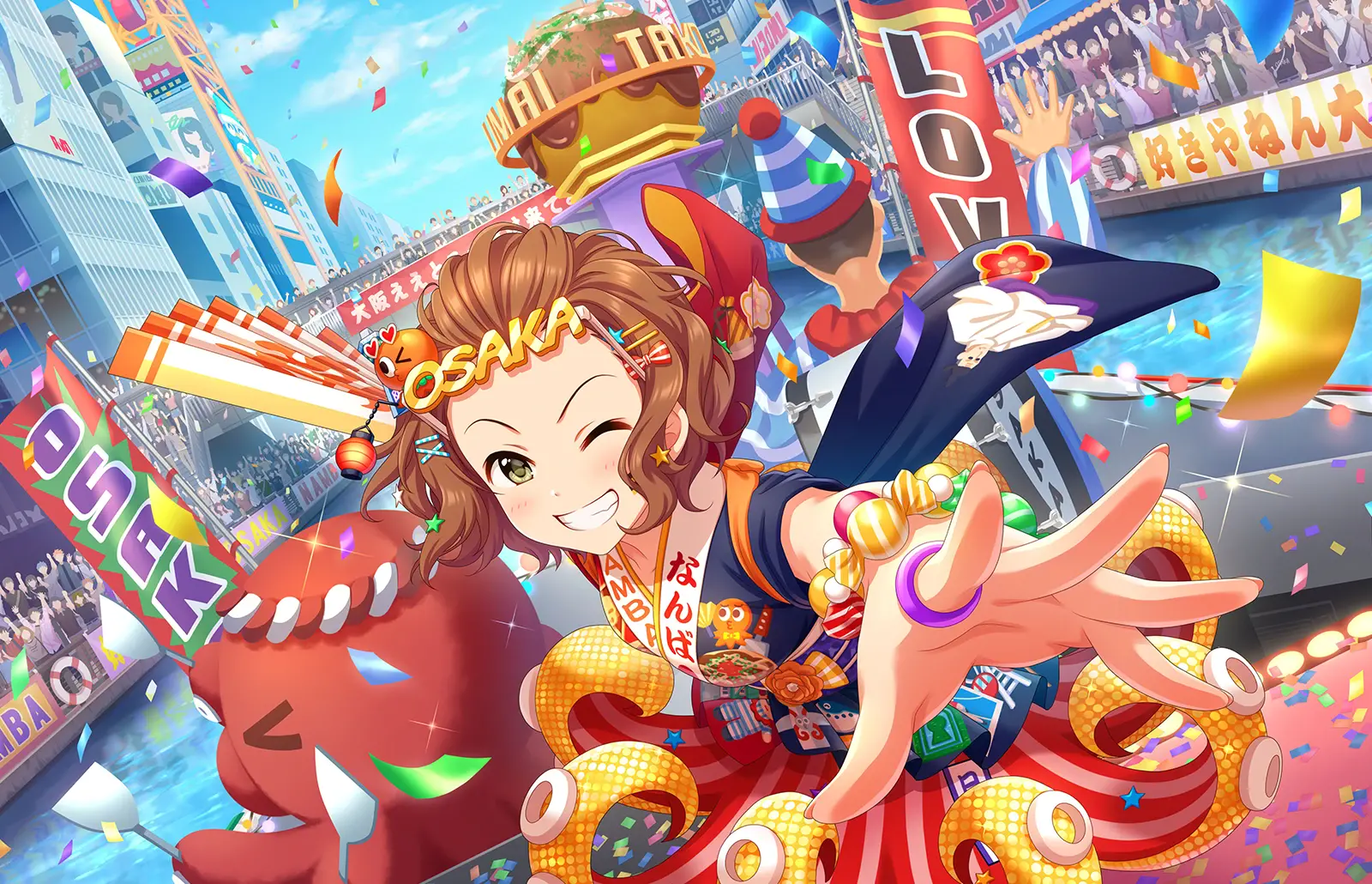 芸人魂溢れるチャキチャキの浪速娘。趣味はお笑いライブ巡りとモノマネ。事務所随一のツッコミ速度を誇り、隙あらばボケも差し込む二刀流。サービス精神旺盛で人懐っこい。タコちゃんヘアピンがトレードマーク。たこ焼きにはうるさい。