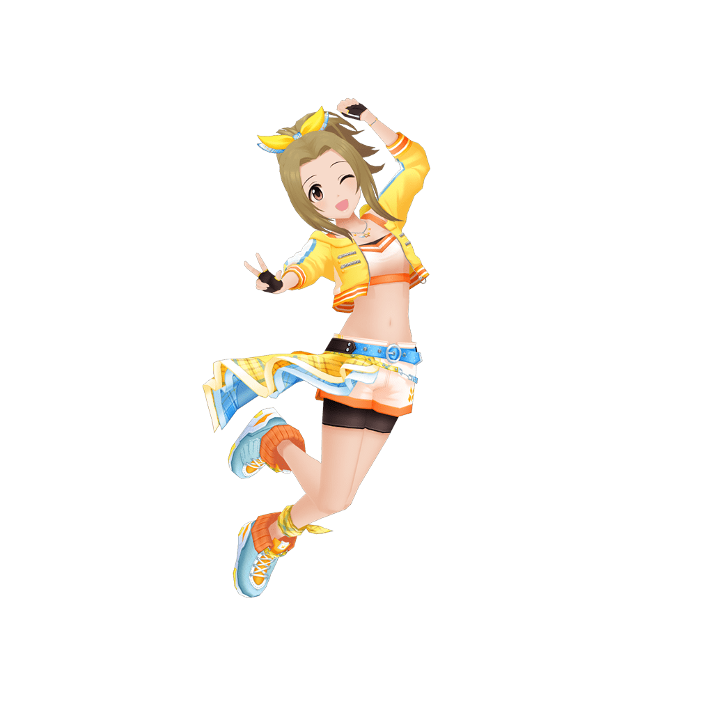 元インストラクターの運動大好きアイドル。いつも元気で明るい頑張り屋。体力には自信がある。趣味は「とにかく運動」。踊りに水泳に球技にと運動なら何でも好きで、勝負事には熱くなるタイプ。意外と食いしん坊らしい。