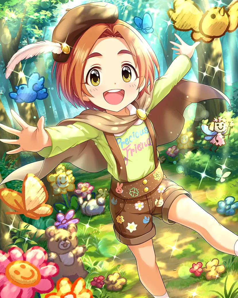 とにかく元気でひまわりのように明るく眩しい9歳。好奇心旺盛で素直な性格。料理が好きで、事務所のみんなにお手製ご飯をふるまうことも。お仕事で一緒になる共演者全員と友達になるのが目標。遠足とLIVE前日は早く寝るらしい。