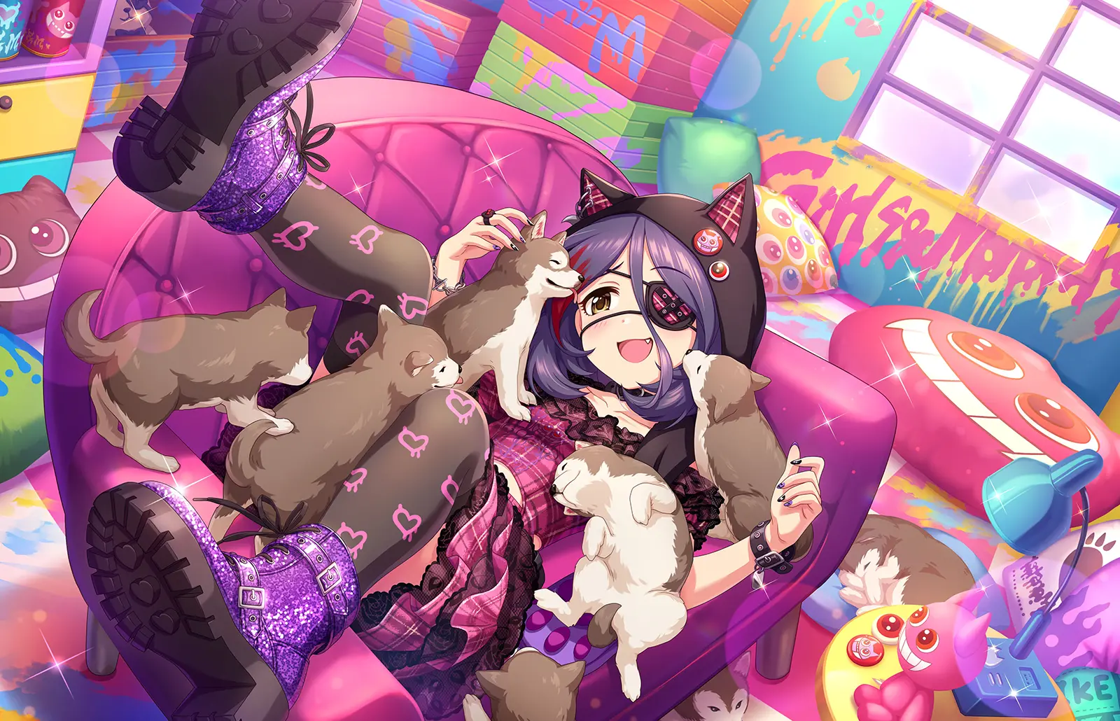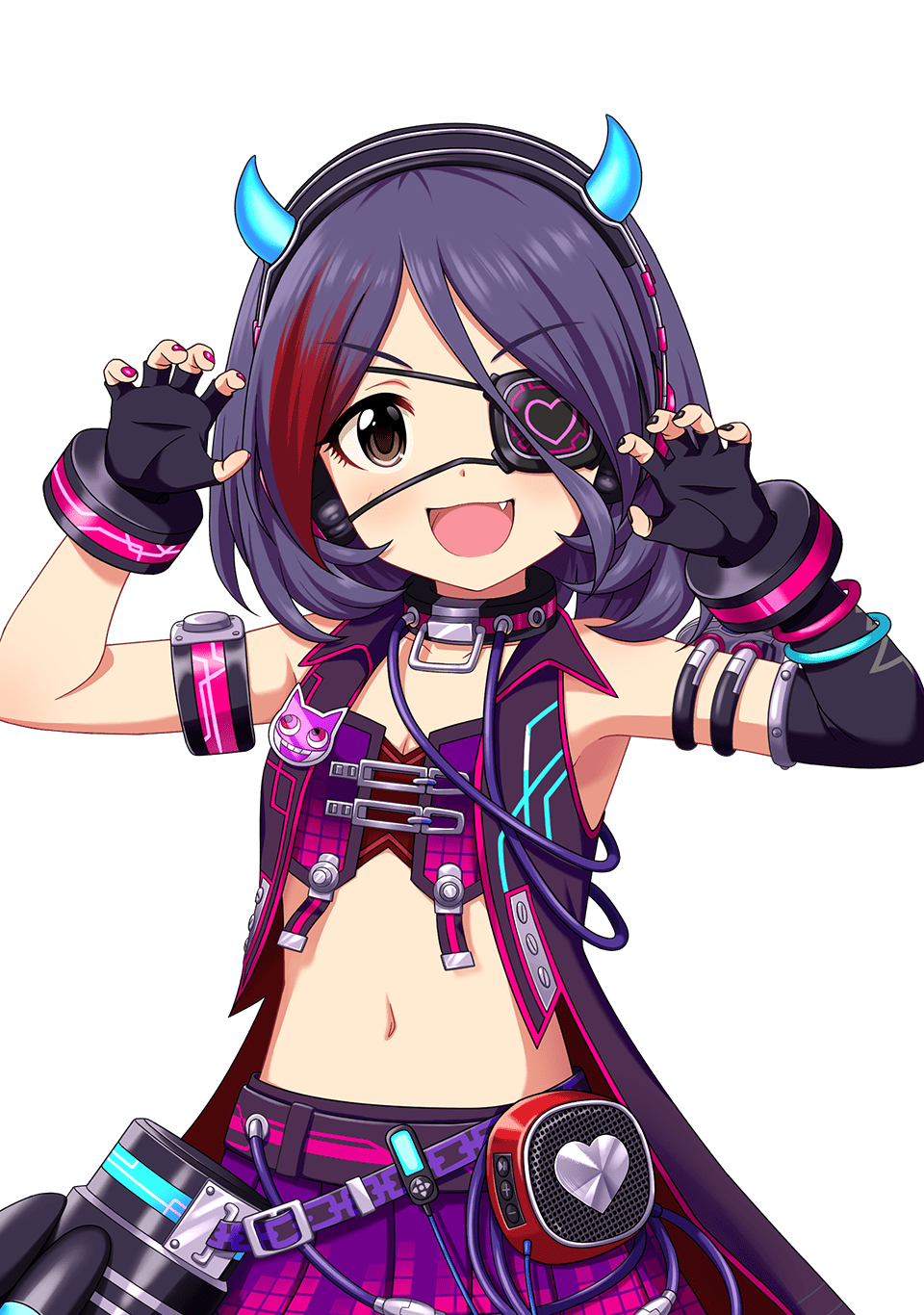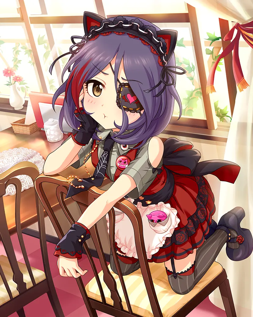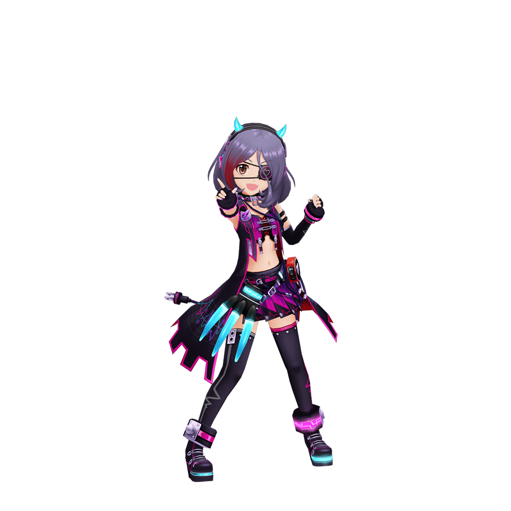 眼帯が特徴的でパンキッシュな14歳のアイドル。服装にはこだわりがあり、お気に入りのファッションブランドがある。ツンツンとした言葉遣いだが、本当は素直で怖がりで、人を思いやることが出来る優しい女の子。ぬいぐるみ集めが趣味。