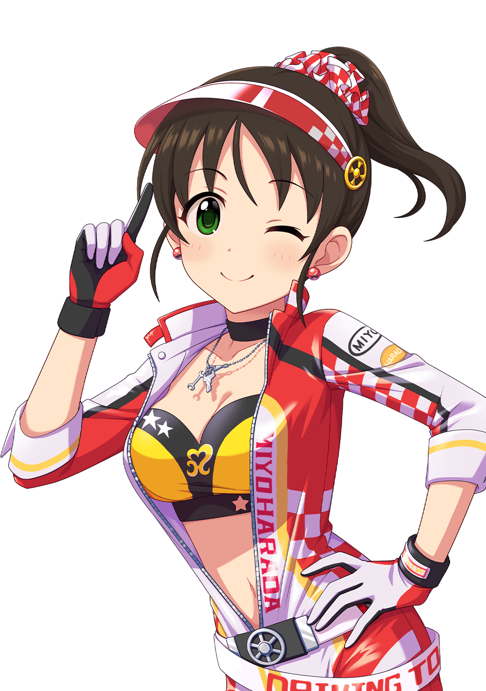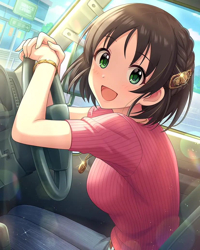車とバイクいじりが大好きな20歳のアイドル。常に工具一式を持ち歩き、車の整備も自らこなす。ドライビングテクニックはドリフト走行ができるほどの腕前。天真爛漫で人懐っこい性格で、時々見せるポニーテールヘアもポイント。