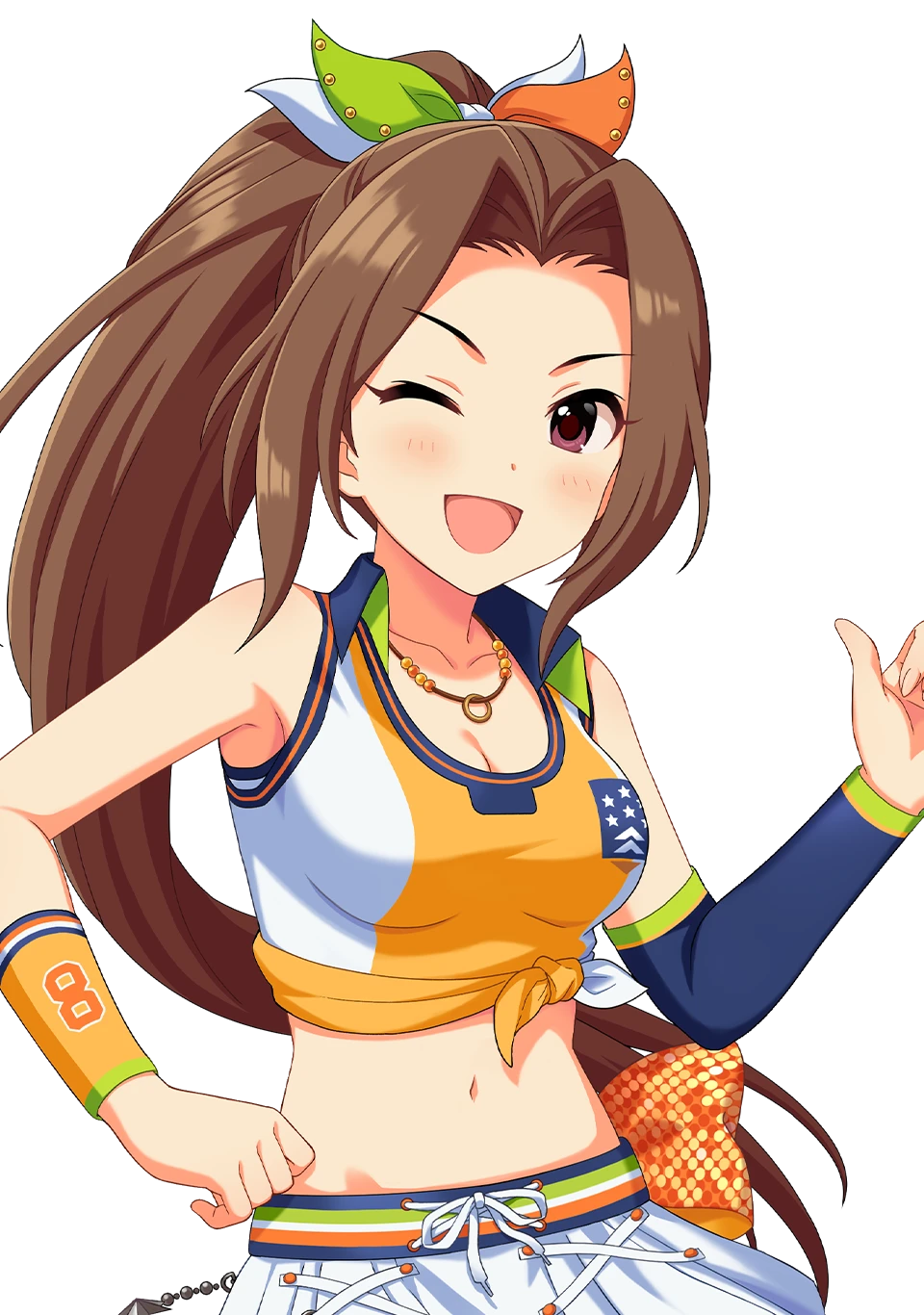 全国大会出場の強豪バスケ部元主将の18歳のスポーツ少女。長いポニーテールが魅力の一つ。基礎練習を怠らない努力家で、バスケ部で培った抜群の運動神経とリーダーシップを武器に現在はアイドル業界というコートで活躍中。