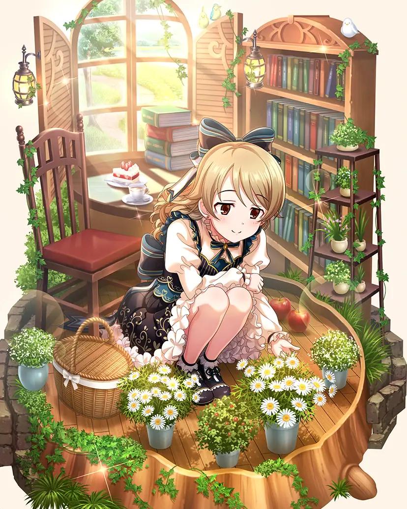 ポエム作りや少女漫画集めが趣味の14歳。人混みは苦手で森の中や狭いところを好む。極度の引っ込み思案で臆病ながらも、独自の感性と豊かな表現力を持つアイドル。絵本の世界に憧れ、作家になる夢を今も胸に抱いている。